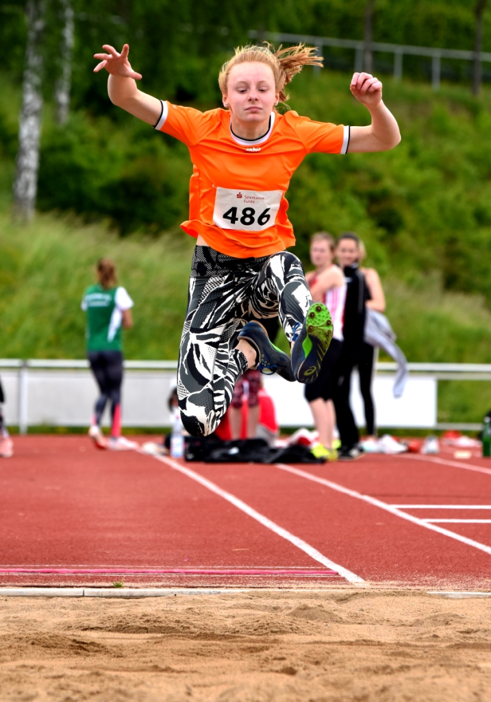 - Im Dreisprung gewann bei der WJU18 Julia Sturm vom TSV Eintracht Stadtallendorf mit 10,97m vor Lena Heller vom Wiesbadener LV mit 10,35m. Beide Qualifizierten sich damit für die Süddeutschen Meisterschaften.