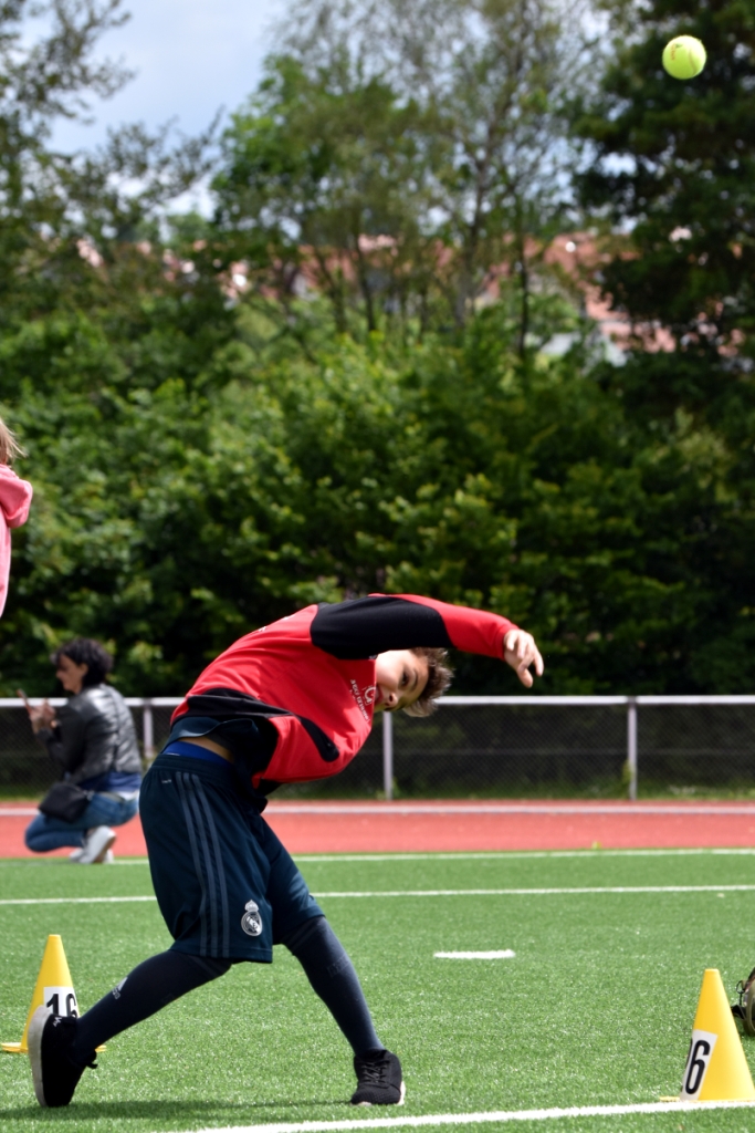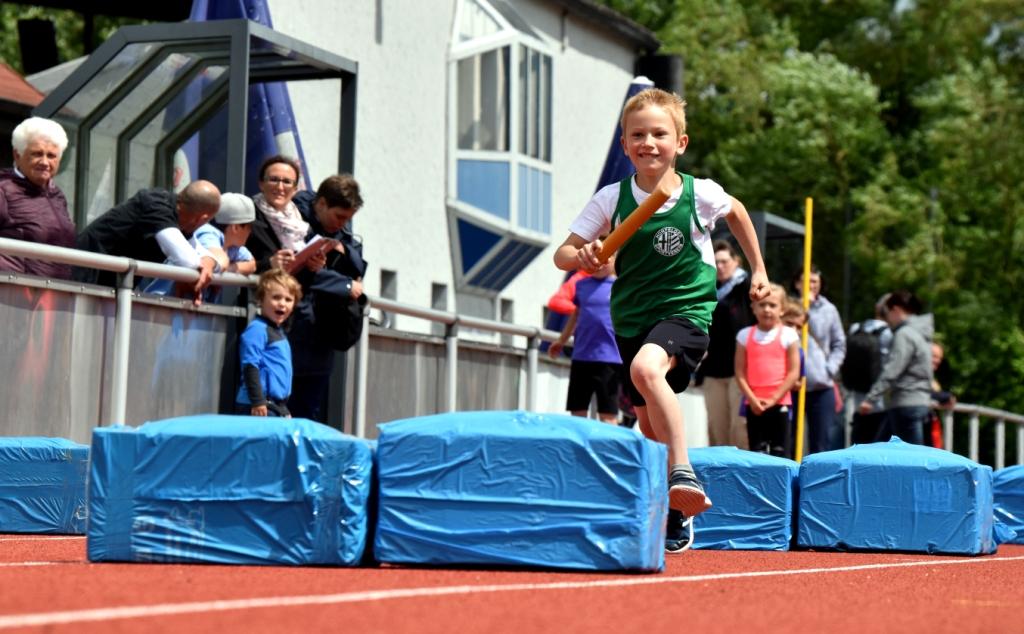 Das Highlight des Tages war der Stadion-Cross. Hier mussten die Nachwuchsathleten der KiLa U12 eine 1.500m lange Strecke mit Hindernissen (Hochsprungmatte, Strohballen) unterschiedlichen Untergründen (Tartan, Schotter, Rasen, Sand) und einer kräftigen Steigung überwinden.