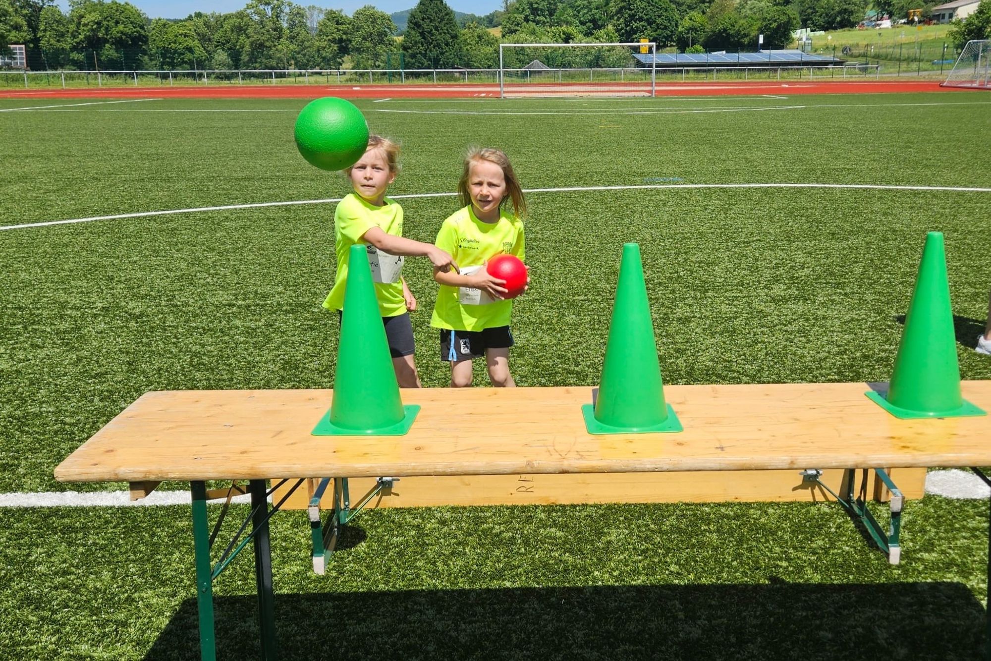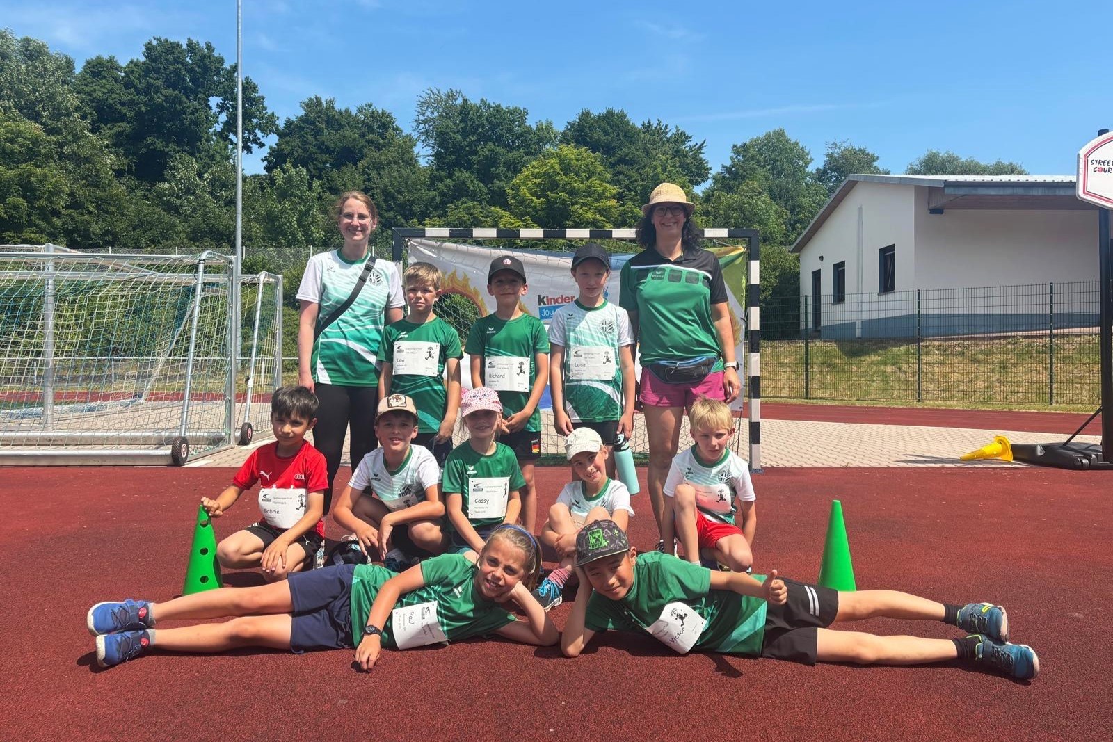 Die jüngsten Teilnehmenden battleten sich im 30m-Sprint, im Zielweitsprung, im Drehwurf und in einer Biathlon-Staffel. Mit Spaß und Ehrgeiz bei der Sache kamen beide Teams nach Punktgleichstand auf den verdienten ersten Platz.