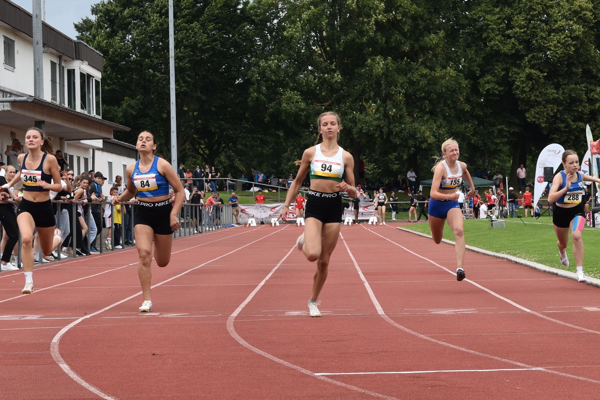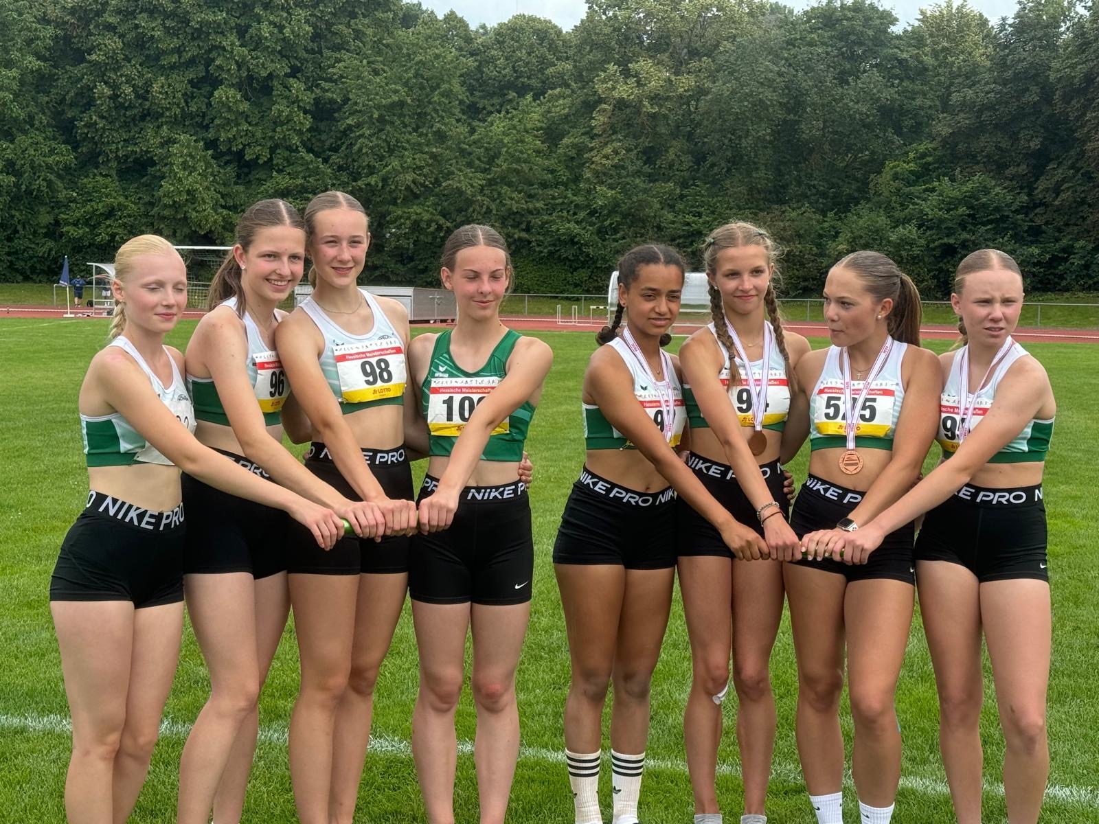 - 6.Platz, Lilianna Zirpel, Linda Schmitt, Marie Weber, Svea Witzel, StG Hünfeld-Neuhof-Flieden, WJU16, 4x100m (52,59s)