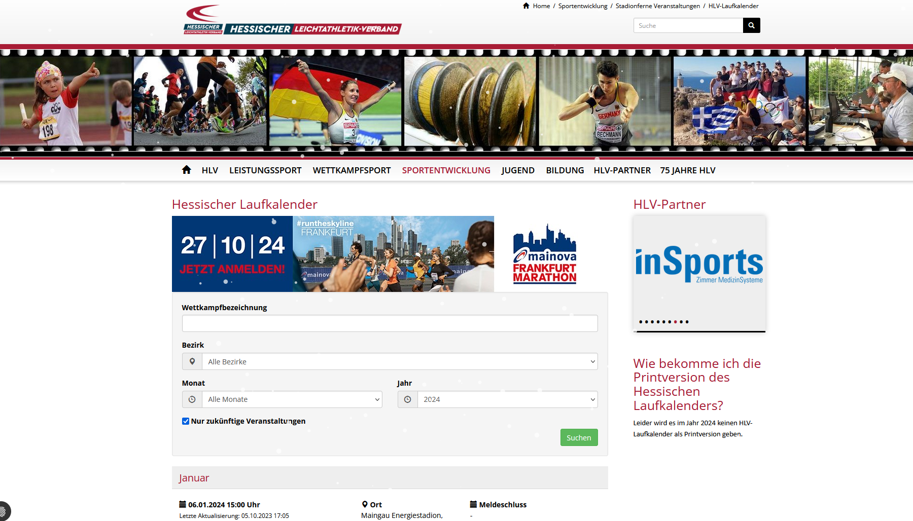 Für Veranstalter:innen besteht seit diesem Jahr die Möglichkeit, eine Anzeige in dem Online-Kalender zu schalten. Diese erscheint oberhalb der Läufe als durchlaufendes Banner. Ein Beispiel, wie das aussieht, finden Sie in der rechten Spalte. Bei Interesse oder für weitere Informationen melden Sie sich gerne bei Nikola Stefaniak, nikola.stefaniak(@)hlv.de.