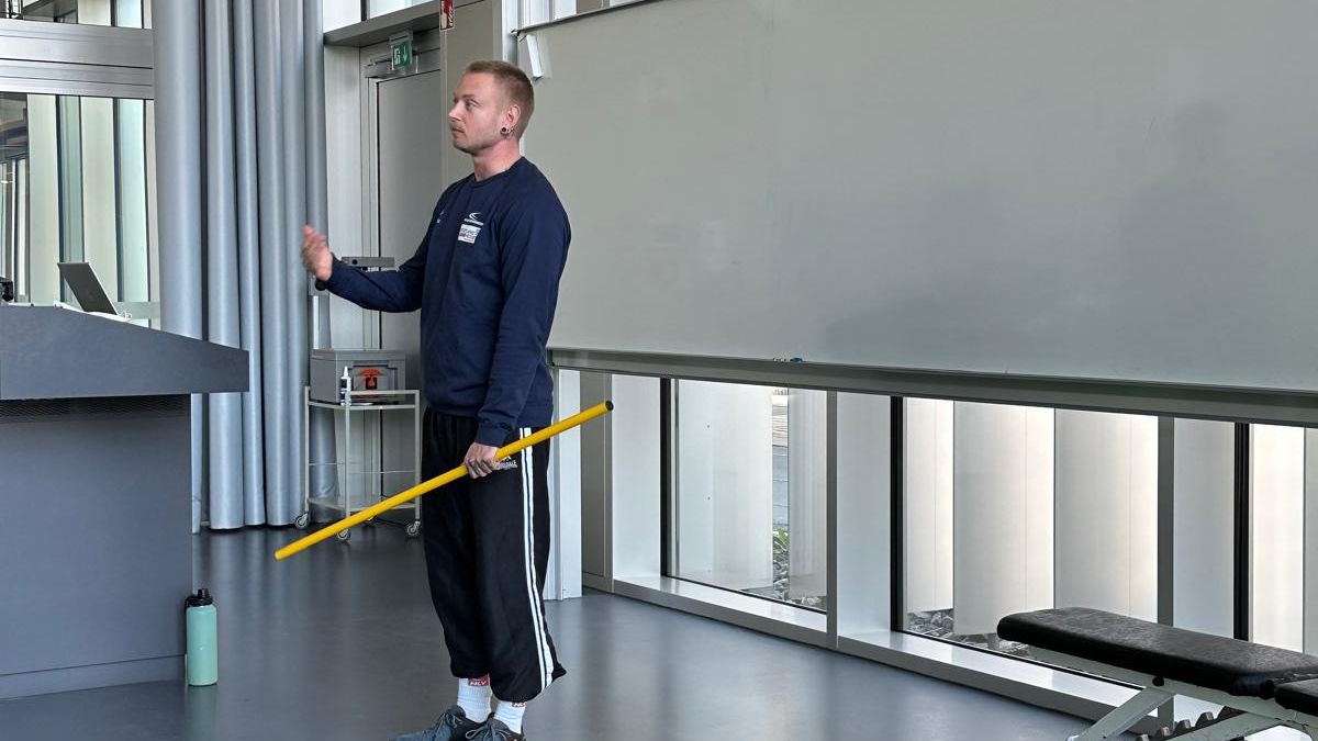 Im Anschluss begann die erste von zwei Workshopphasen. Dort wurden die Teilnehmenden in vier Workshops aufgeteilt. Der Trainingswissenschaftler vom OSP Hessen, Stefan Erlewein, thematisierte in seinem Workshop die Speerwurftechnik. Bei der ehemaligen, sehr erfolgreichen Hammerwerferin Kathrin Klaas, stand die Hammerwurftechnik im Fokus. Dabei konnten die Teilnehmenden die Technik in Teilschritten ausprobieren und am Ende mit einem Übungs-Wurfhammer einen Wurf selbst durchführen. Martin Rumpf erläuterte im dritten Workshop die Grundlagen der Drehstoßtechnik. Der vierte Workshop wurde von Heilpraktiker und Osteopath Peter Ringeisen mit dem Schwerpunkt "Verletzungsprophylaxe für Werfer:innen" gehalten. Im Fokus standen Übungen mit verschiedenen Trainingsmitteln zur Prävention von Verletzungen. Außerdem wurden viele Fallbeispiele von den anwesenden Teilnehmenden diskutiert und gemeinsam nach Lösungsansätzen gesucht.