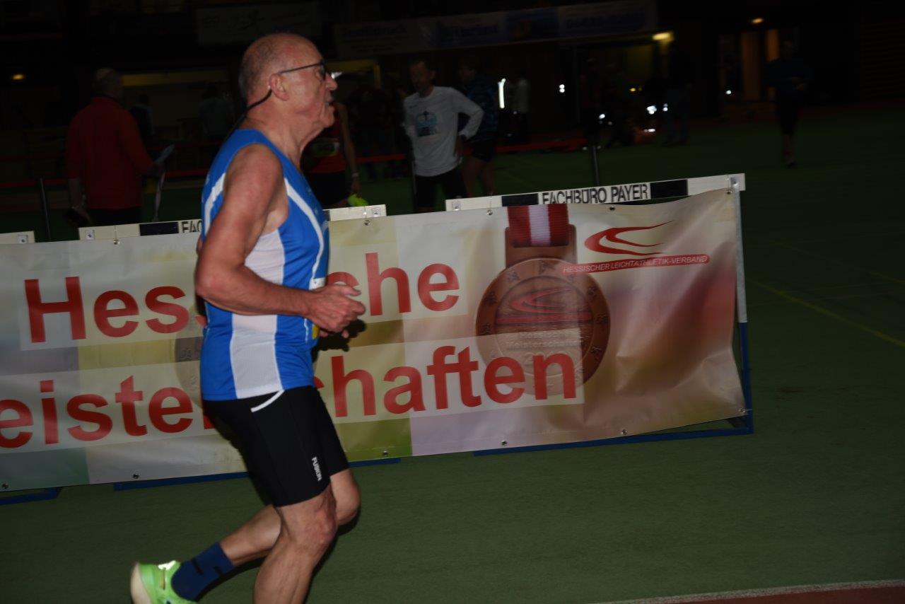 M75. Je oller desto doller. Dr. Ernst–Günther Gensch aus Cölbe (SV Blau-Weiß Dodenhausen) startete über 60 Meter, über 400 Meter, im Kugelstoßen und zuletzt noch über 3000 Meter.