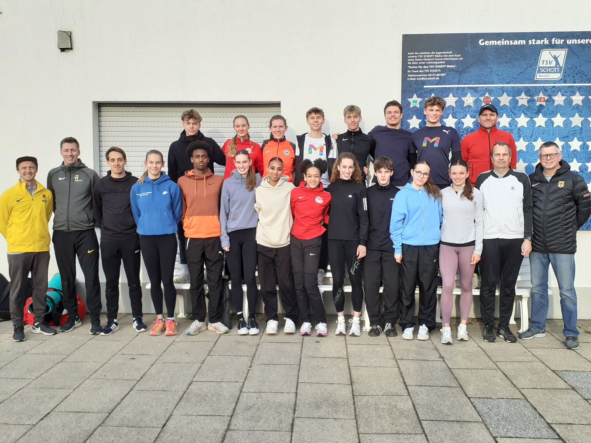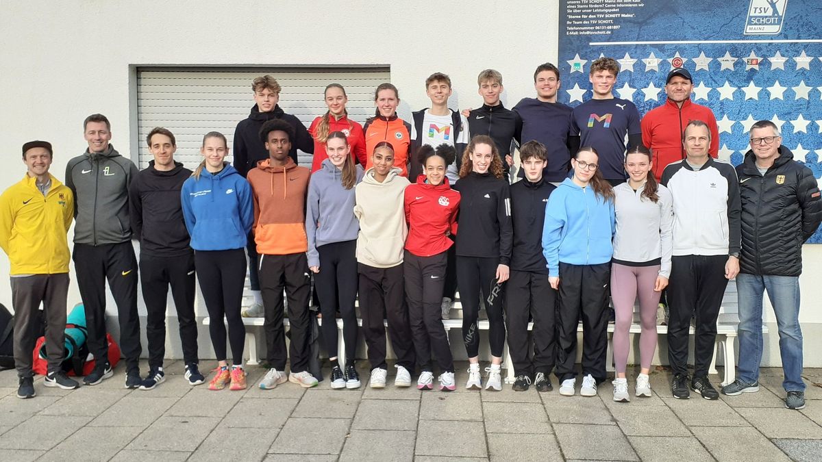 Am vergangenen Samstag, den 9. März, fand auf den Anlagen des TSV SCHOTT Mainz die gemeinsame NK-2-Regionalmaßnahme der Leichtathletik-Landesverbände Hessens, des Saarlandes sowie der drei rheinland-pfälzischen Verbände statt. Unter der Anleitung von Jürgen Bernhart (Bad Homburg, Landestrainer Sprint RLP), Marc Kowalinski (Trier, Bundestrainer Langstrecke) und Alexander Gakstädter (Zweibrücken, Bundestrainer Stabhochsprung und Landestrainer Sprung RLP) sowie der Gesamtleitung von Stefan Letzelter (Klein-Winternheim, Leitender Landestrainer RLP) absolvierten 17 Mitglieder des jüngsten Bundeskaders, darunter sieben aus Rheinland-Pfalz, acht aus Hessen (Tom Bingel, Josephina Engel, Louisa Grauel, Henning Judt, Hannah Lösel, Finja Ponndorf, Leticia Puknus, Heba Tidjani) und zwei aus dem Saarland bei sonnigem Wetter zwei gemeinsame Trainingseinheiten. Des Weiteren standen das Kennenlernen untereinander und der anwesenden Trainer, Teambuilding und Informationsaustausch im Fokus. Das Team für diese erstmals in Rheinland-Pfalz ausgetragenen Maßnahme ergänzte Physiotherapeut Nico Weimer, der ein Alternativtraining für die angeschlagenen Athleten anbot und bei Problemen immer ansprechbar war. Nach der ersten Trainingseinheit und dem Mittagessen leitete die ehemalige Stabhochspringerin und aktuelle DLV-Sportpsychologin Dr. Lisa Urban (geb. Rysih) einen Workshop, bevor es für die zweite Einheit zurück ins Stadion ging. Der DLV-Teammanager Nationalmannschaft Nachwuchs Adi Zaar, der die saarländischen Athleten begleitete, gab wertvolle Informationen zur Sommersaison sowie dem Qualifikationsmodus zur U18 EM in Banská Bystrica, für die meisten Teilnehmer das wichtigste Saisonziel. Die jungen Sportlerinnen und Sportler zeigten sich bei den Trainingseinheiten und dem Workshop sehr engagiert und gaben am Ende der Veranstaltung durchgängig ein positives Feedback. Allen, die zum Gelingen der Maßnahme beigetragen haben, sei auch an dieser Stelle noch einmal herzlich gedankt.