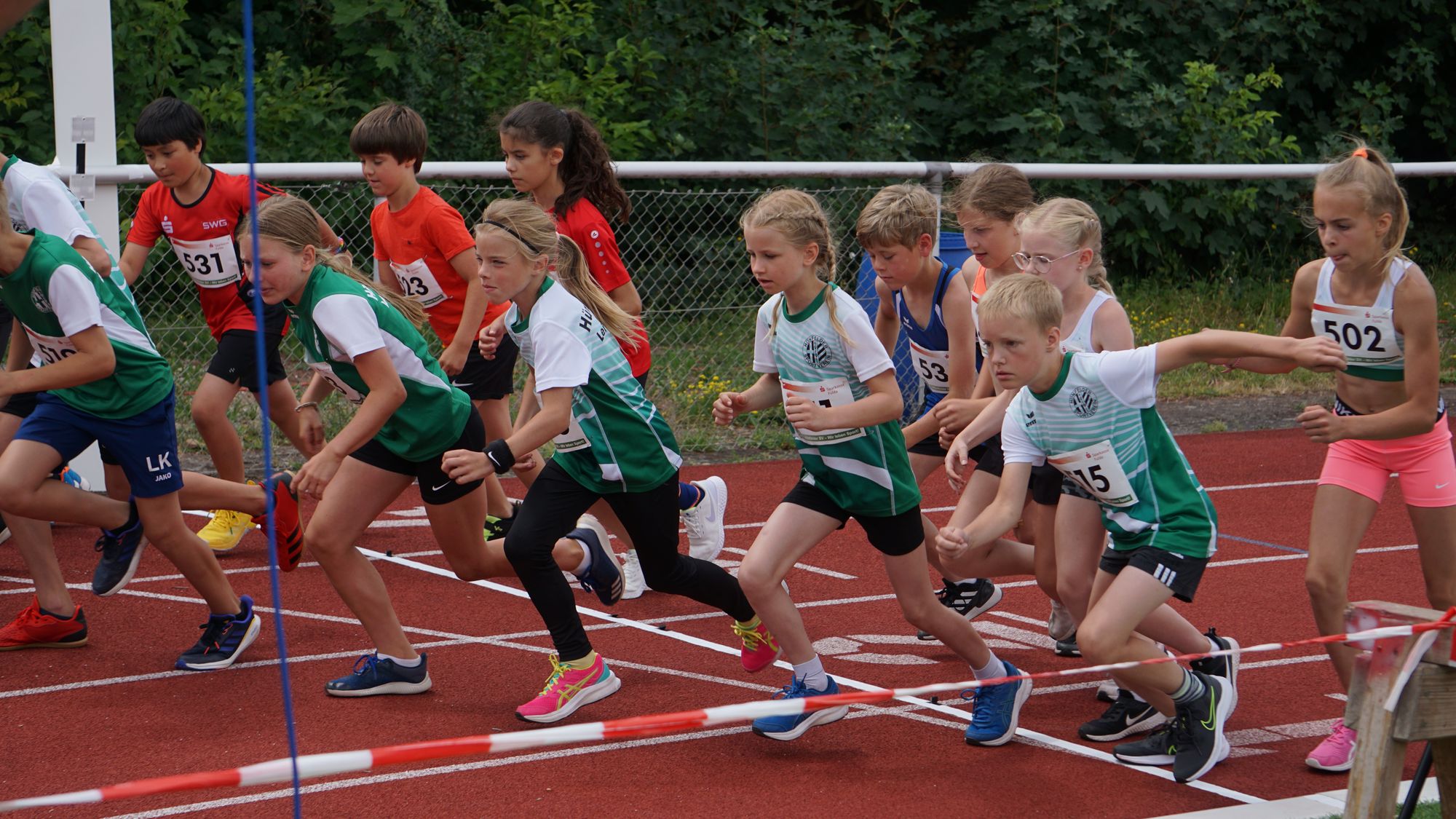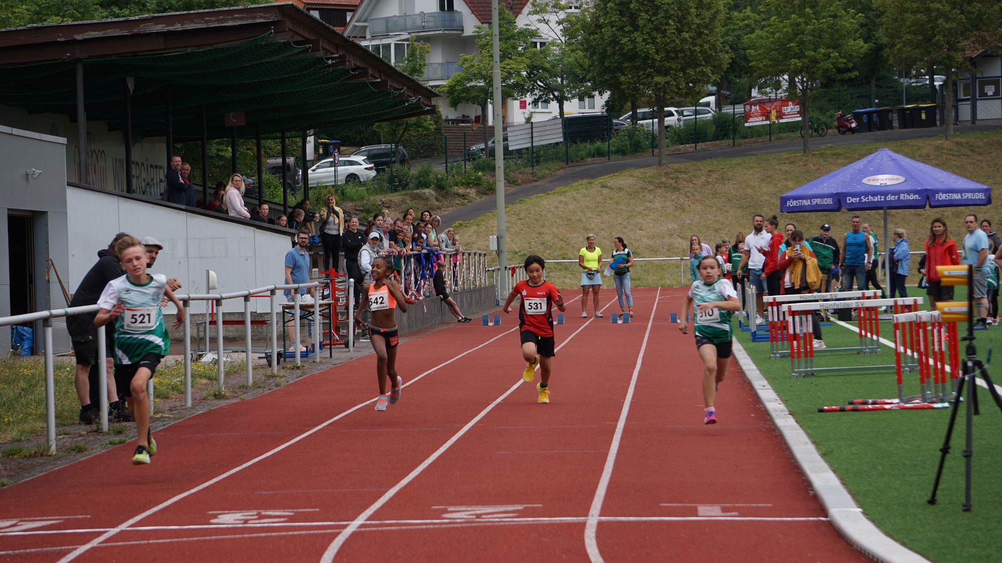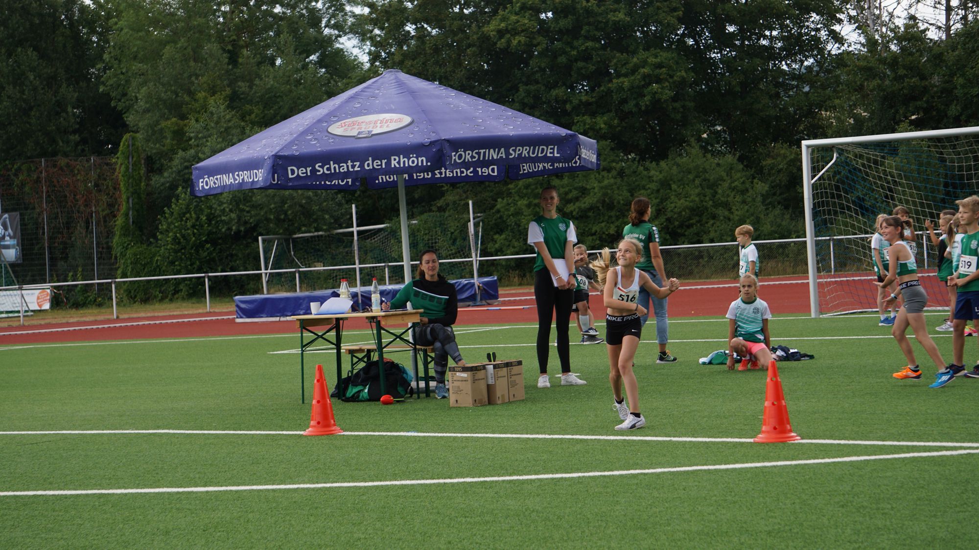 Im ersten Wettkampf des heutigen Tages, dem „Regionalentscheid der KiLa U12“ (KiLa = Kinderleichtathletik) wurden die Vertreter der Region Mitte (Kreise Fulda, Vogelsberg, Gießen, Marburg, Wetzlar, Dillenburg) für den „Hessenentscheid der KiLa U12“ am 17.09.22 ebenfalls in Hünfeld auf der Rhönkampfbahn ermittelt. Der Wettkampf setzte sich aus „5“ Einzeldisziplinen (50m-Sprint, Drehwurf mit Tennisringen, Schlagwurf mit Nerf Vortex Mega-Heuler, Additionsweitsprung und einem Stadion-Cross) zusammen. Die erste Mannschaft des Hünfelder SV gewann alle „5“ Einzzeldisziplinen souverän und startet damit beim Hessenentscheid. Die Mannschaft des TV Neuhof belegte den zweiten Platz und startet damit ebenfalls beim Hessenentscheid.Und auch für die zweite Mannschaft des Hünfelder SV sieht es nicht schlecht aus, die ersten drei Mannschaften des „Regionalentscheids Mitte“ starken beim Hessenentscheid, und den dritten Platz teilen sich unsere zweite Mannschaft punktgleich mit der Mannschaft des LAZ Gießen.