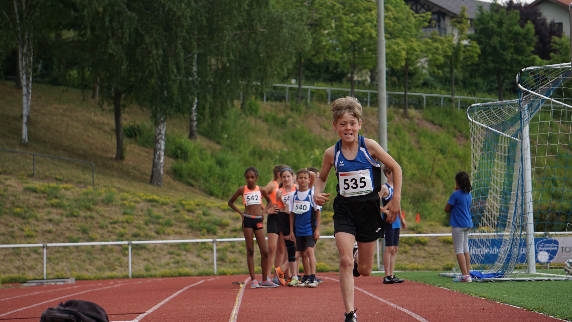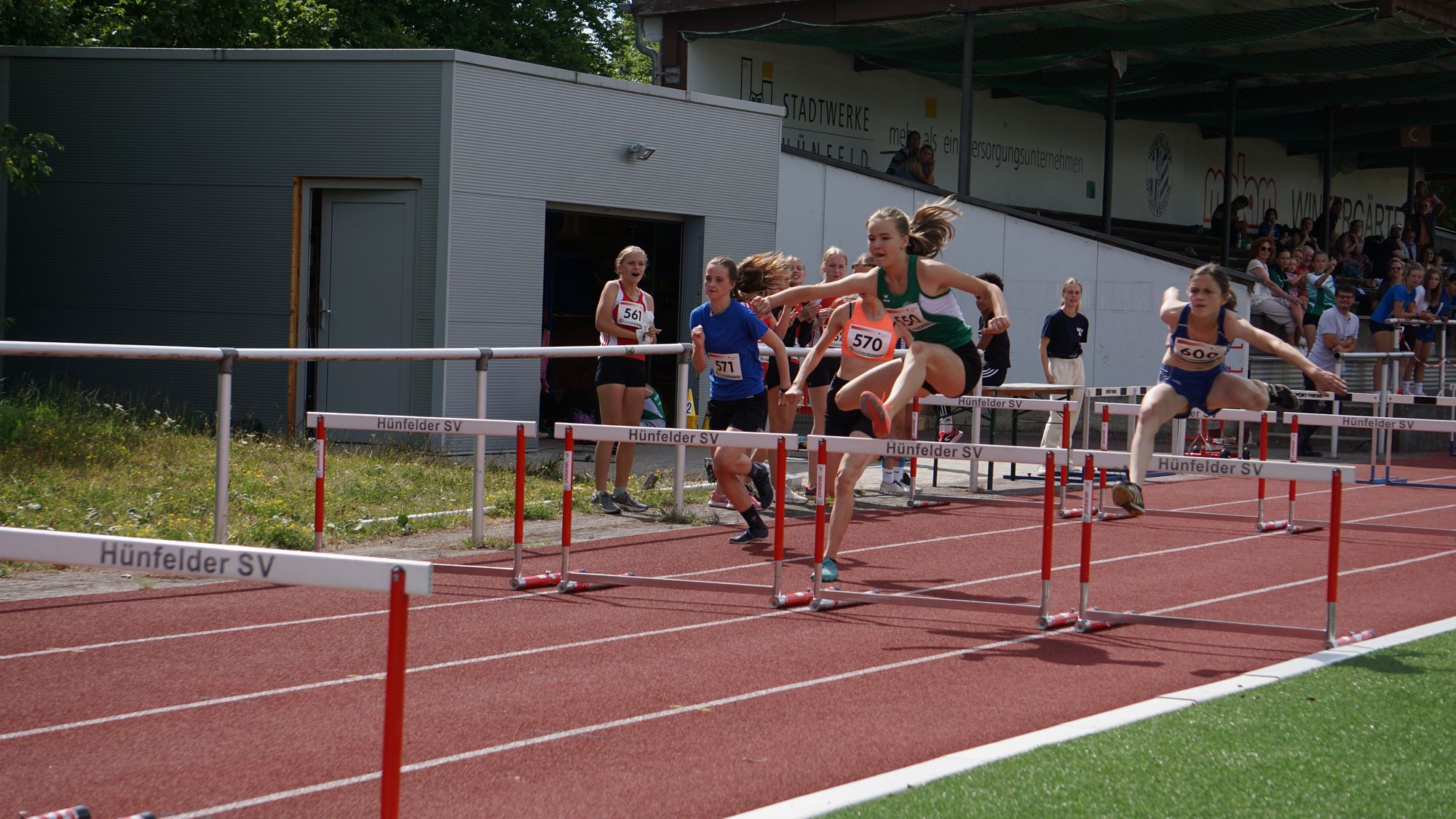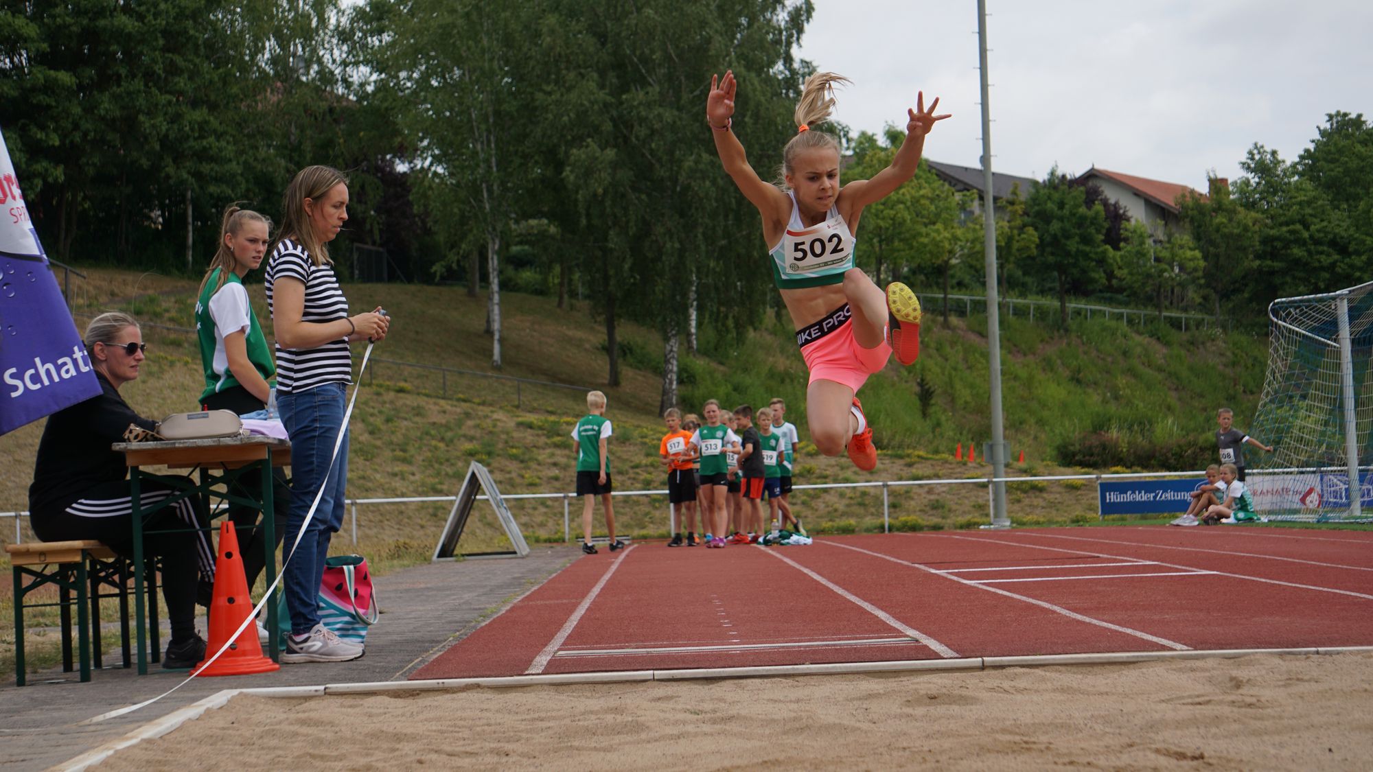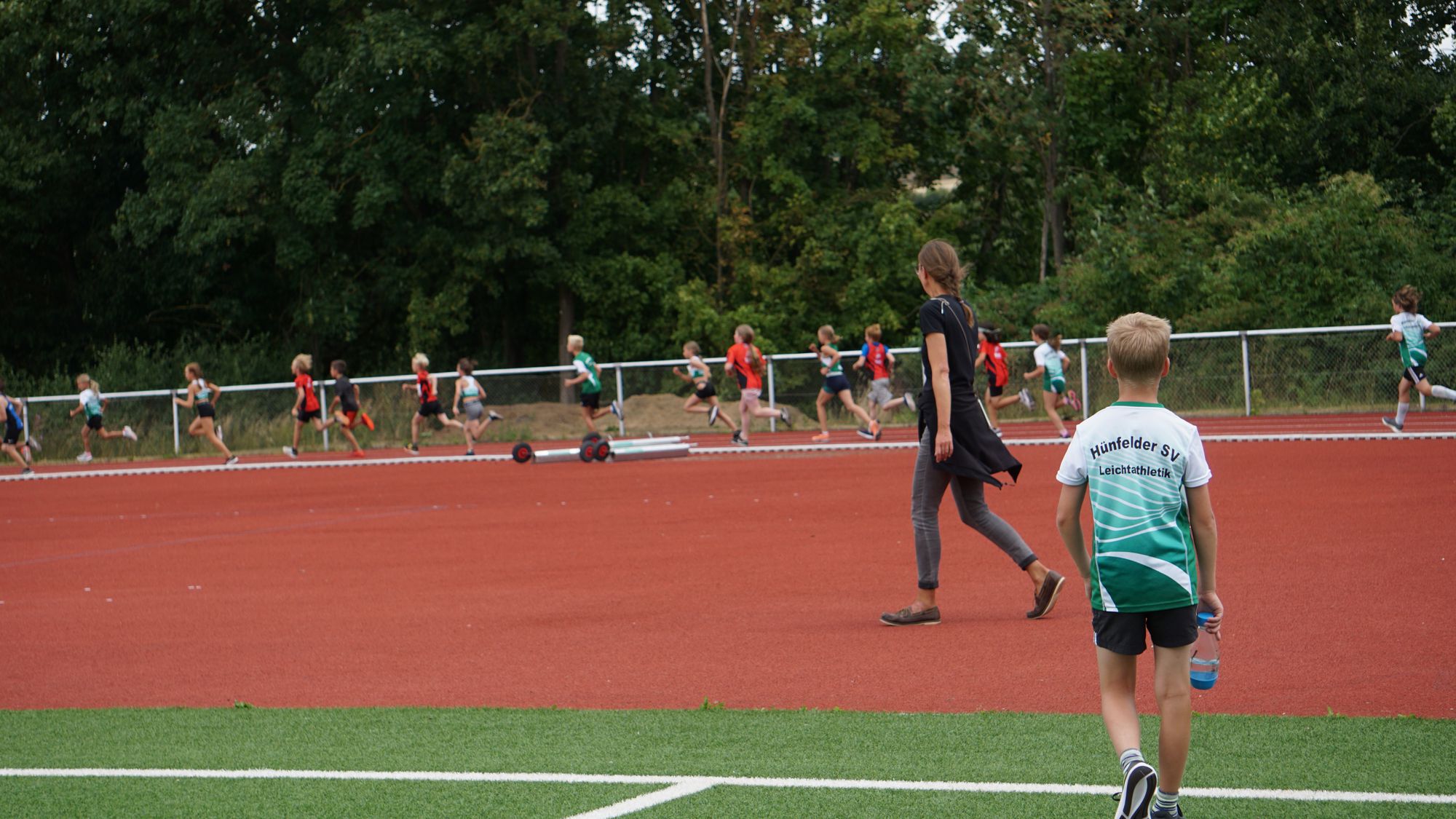 Im ersten Wettkampf des heutigen Tages, dem „Regionalentscheid der KiLa U12“ (KiLa = Kinderleichtathletik) wurden die Vertreter der Region Mitte (Kreise Fulda, Vogelsberg, Gießen, Marburg, Wetzlar, Dillenburg) für den „Hessenentscheid der KiLa U12“ am 17.09.22 ebenfalls in Hünfeld auf der Rhönkampfbahn ermittelt. Der Wettkampf setzte sich aus „5“ Einzeldisziplinen (50m-Sprint, Drehwurf mit Tennisringen, Schlagwurf mit Nerf Vortex Mega-Heuler, Additionsweitsprung und einem Stadion-Cross) zusammen. Die erste Mannschaft des Hünfelder SV gewann alle „5“ Einzzeldisziplinen souverän und startet damit beim Hessenentscheid. Die Mannschaft des TV Neuhof belegte den zweiten Platz und startet damit ebenfalls beim Hessenentscheid.Und auch für die zweite Mannschaft des Hünfelder SV sieht es nicht schlecht aus, die ersten drei Mannschaften des „Regionalentscheids Mitte“ starken beim Hessenentscheid, und den dritten Platz teilen sich unsere zweite Mannschaft punktgleich mit der Mannschaft des LAZ Gießen.