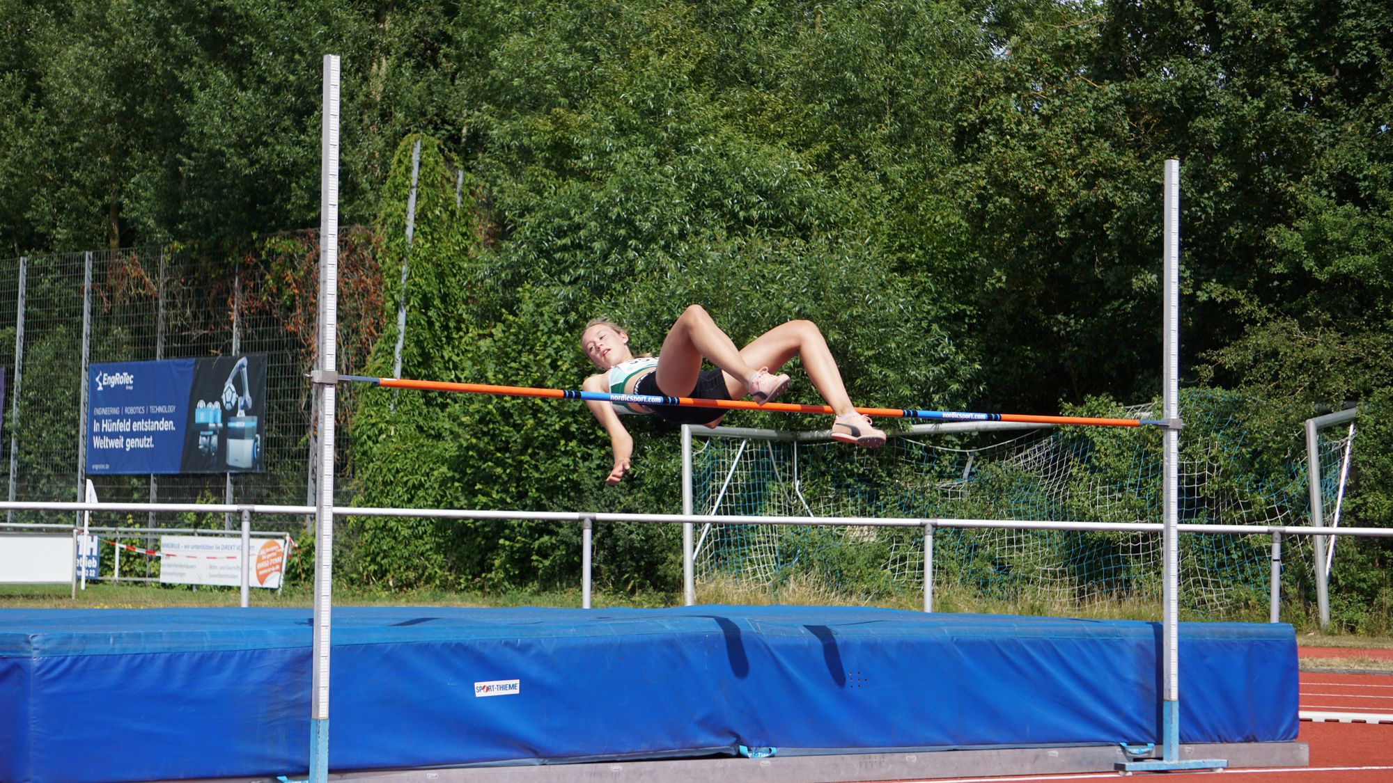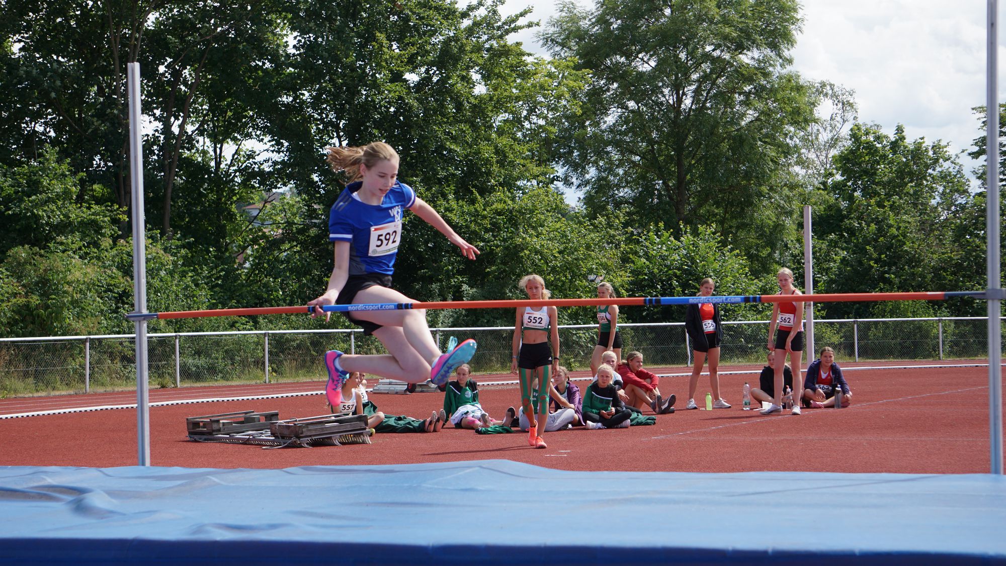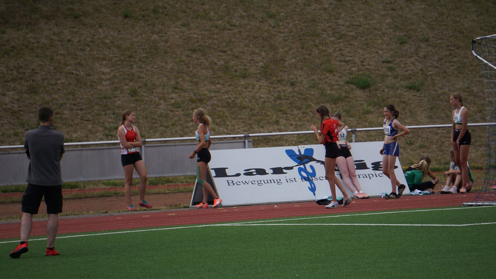 Der zweite Wettkampf des Tages war dann ab 14:00 Uhr ein „Landesoffener DJMM-Wettkampf U14“ (DJMM = Deutsche Jugend-Mannschaftsmeisterschaft). Zum Hessenfinale werden bei den Jungs und Mädchen die jeweils 10 punktstärksten Teams eingeladen; aktuell fehlt es aber noch an einem Ausrichter! Um u.a. dieses Ziel zu erreichen besteht seit vielen Jahren eine Startgemeinschaft bestehend aus dem TV Neuhof, dem TV Flieden und dem Hünfelder SV. Der ursprüngliche Leistungsgedanke, aus den drei Vereinen die besten Athletinnen in die erste Mannschaft zu bringen, um so auf Hessenebene eine bessere Chance zu haben, wird vom TV Neuhof derzeit aber nicht mehr verfolgt. So starteten dann unter dem Dach der Startgemeinschaft eine aus Athletinnen des Hünfelder SV und des TV Flieden bestehende Mannschaft und eine nur aus Athletinnen des TV Neuhof bestehende Mannschaft. Im Ergebnis belegte das Team „Hünfeld-Flieden“ der Startgemeinschaft mit 6.430 Punkten den ersten Platz vor dem Team „Neuhof“ mir 6.373 Punkten. In Summe eine nicht optimale Situation, den mit den Neuhofer Athletinnen in der ersten Mannschaft hätte die Startgemeinschaft rd. 170 Punkte mehr verbucht, stände in Hessen besser da!