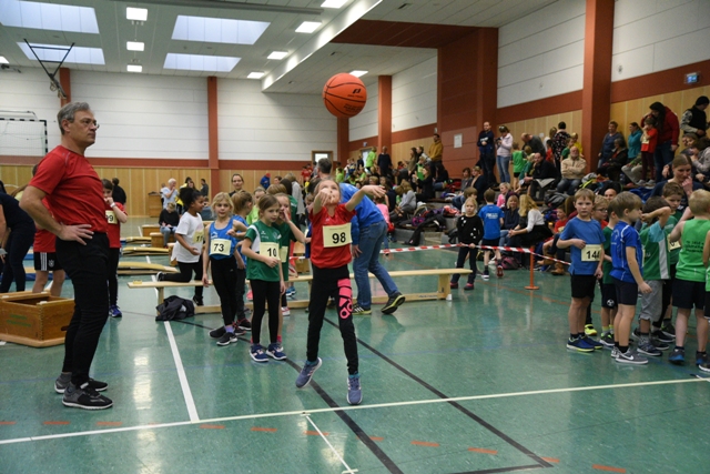 Helmut Schaake. Wallau. So viele wie noch nie starteten beim 16. Schülersportfest des FV Wallau in der Großsporthalle. Dementsprechend konnte man schon vor der Halle die lautstarken Anfeuerungsrufe hören. Über 150 Teilnehmer waren gemeldet, und am Ende waren es noch 145 Nachwuchssportlerinnen und -sportler aus 12 Vereinen, die mit viel Spaß sprinteten, liefen, warfen und sprangen. Mit viel Freude ohne Aggressionen waren die Kinder bei der Sache. Stress hatten nur die Trainer und Betreuer, die ihre Schützlinge zum richtigen Zeitpunkt an die jeweilige Wettkampfstation bringen mussten. Die Organisation lag erneut beim bewährten Orgateam um Abteilungsleiterin Eva Mayerle und Kerstin Bergen vom FV 1913 Wallau, die mit 35 Helfern für den gelungenen Sportnachmittag einen extra Beifall verdient haben. Nach vielen spannenden Wettkämpfen bildeten die Rundenstaffeln am Ende der Veranstaltung den krönenden Abschluss, bevor die jungen Athletinnen und Athleten mit ihren Urkunden und etwas Süßem den Nachhauseweg antraten.