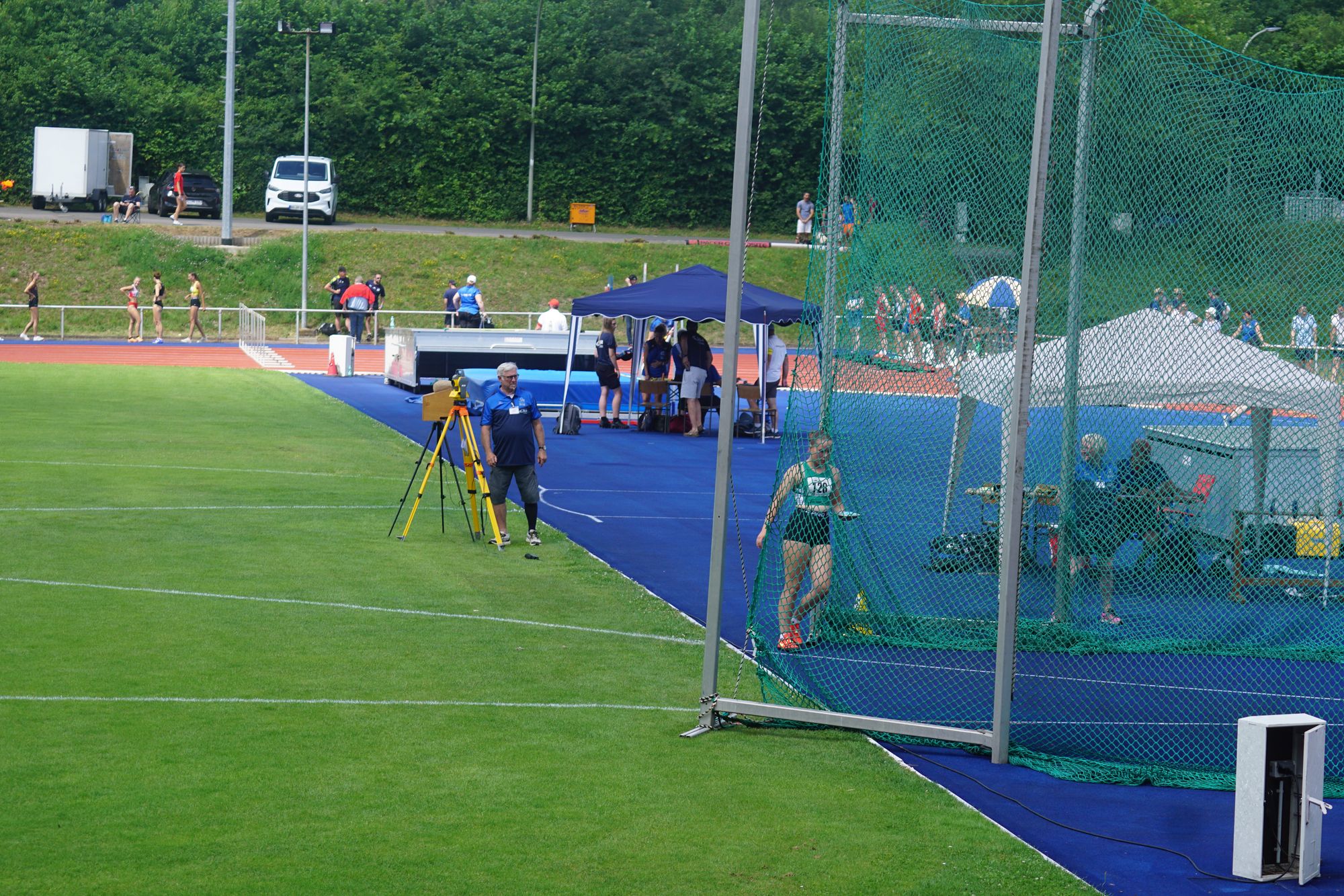 Als nächstes ist der Sprint über 100m dran. Emma Röhrdanz, von W15 zur WJU18 hochgestartet, muss als erste ran. Und qualifiziert sich für den Zwischenlauf. Danach sind Hanna Knieper und Lotte Schwarz, Lotte wie Emma hochgestartet, an der Reihe. Hanna mit neuer Saisonbestleistung von 12,89 Sekunden. Für Hanna und Lotte reicht es nicht für den Zwischenlauf. Bei Anna Volmer von der LG Fulda das gleiche Bild, auch bei Anna reicht es nicht für den Zwischenlauf. Für Emma ist nach dem Zwischenlauf erwartungsgemäß ebenfalls Schluss.