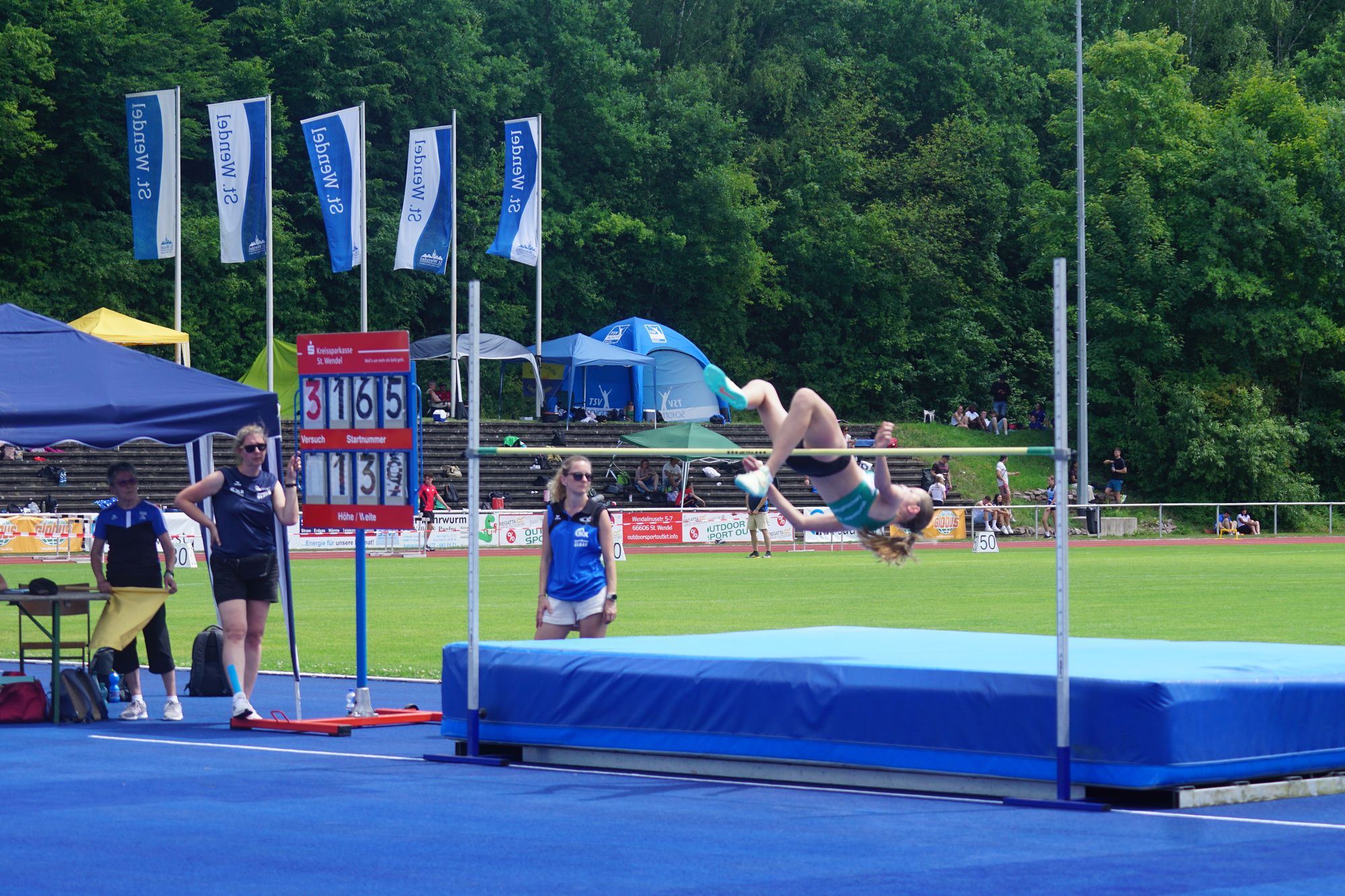 Die beim Hochsprung hochgestartete Amelie Witzel ist immer für eine Überraschung gut