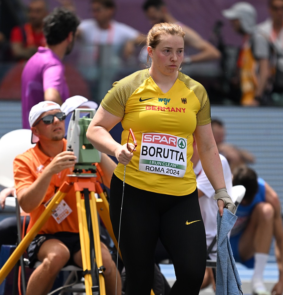 Nachdem die Läuferinnen und Läufer ins Ziel im Stadio Olimpico eingelaufen sind, gingen auch die Wettkämpfe im Stadion weiter. Samantha Borutta war in der Qualifikation B des Hammerwurfs gefragt. Mit nur einem gültigen Versuch auf 68,00m reichte es leider ganz knapp nicht für das Finale. 68,66m hätten für den Einzug gereicht. Borutta beendet den Wettkampf auf Rang 16.