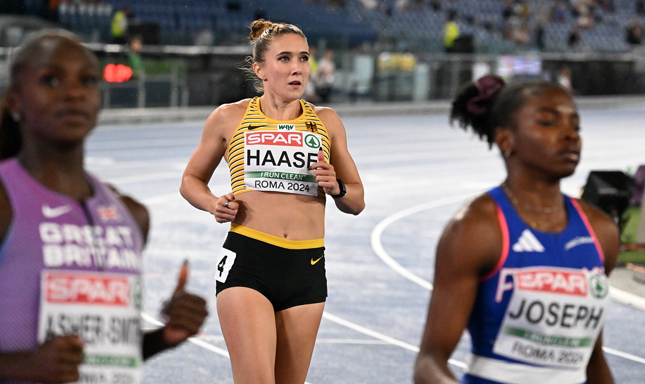 Sehr souverän hingegen spulte Eileen Demes ihr Rennen über 400m Hürden ab. In einem klasse Rennen und mit neuer persönlicher Bestleistung von 55,25 sek. gewann Demes ihren Lauf und zieht als Zweitschnellste der Vorläufe in die Halbfinals am Montag ein.