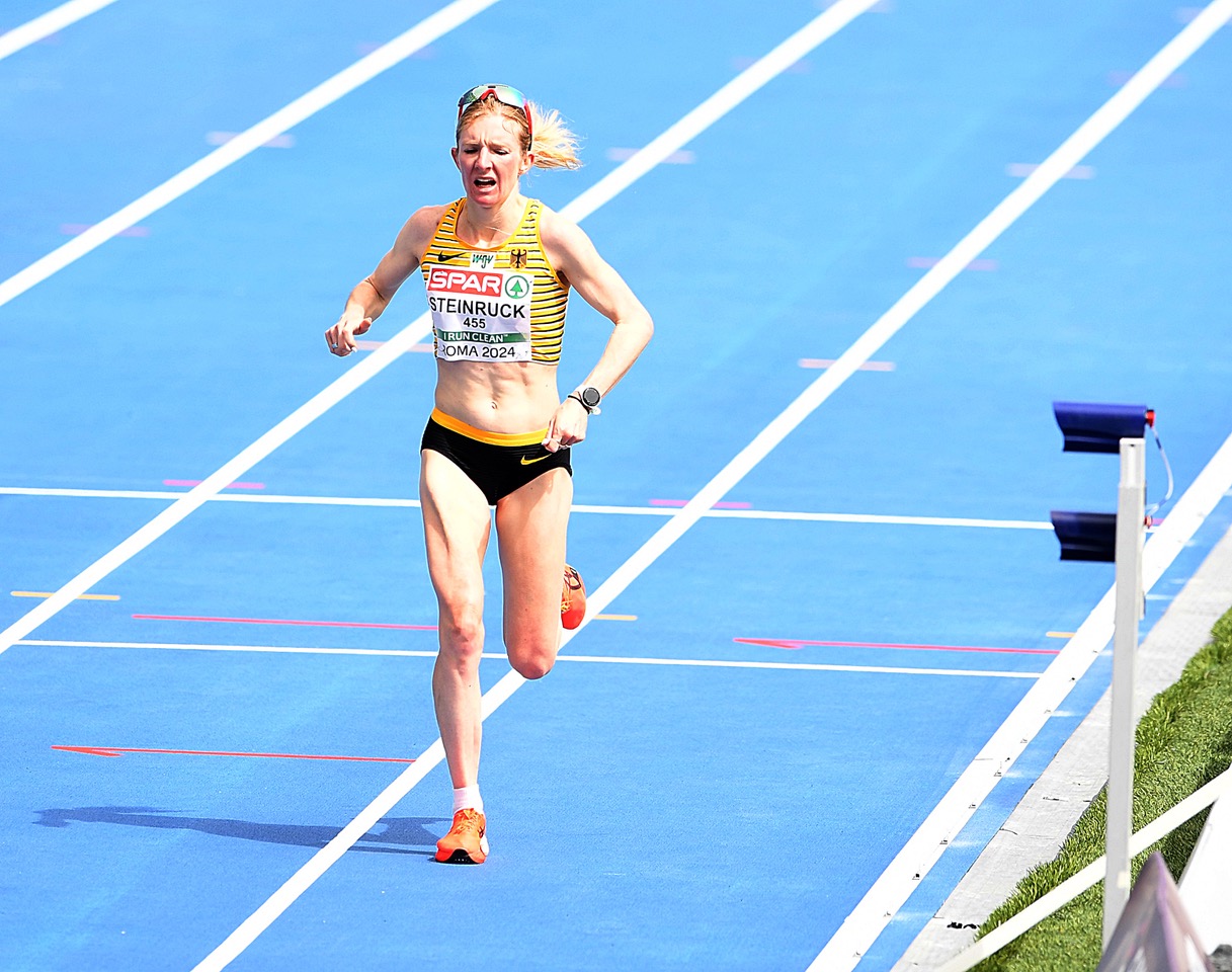 An Tag drei sind insgesamt neun hessische Athletinnen und Athleten in Rom am Start. Den Anfang machten die Langstrecklerinnen Melat Kejeta und Katharina Steinruck. Pünktlich um 9:30 Uhr gab es für die zwei und ihre drei Nationalmannschaftskolleginnen den Startschuss zum Halbmarathon. Trotz schwüler und warmer Temperaturen war es vor allem Kejeta, die lange in der Führungsgruppe mitlaufen konnte. Am Ende stand ein grandioser Platz fünf für sie zu Buche. Steinruck hatte mit den Temperaturen zu kämpfen und erreichte in der Endabrechnung Platz 37. Durch eine starke Teamleistung haben aber beide Grund zum Jubeln: Silber in der Mannschaftswertung und die erste Medaille für Team Hessen!